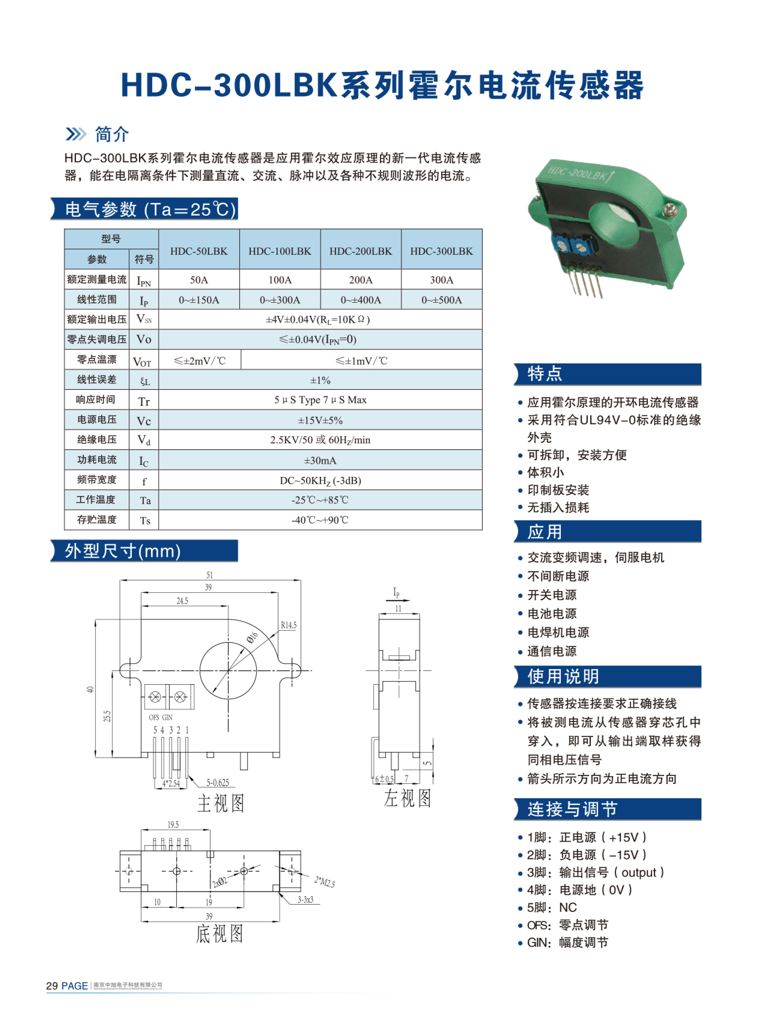 HDC-300LBK系列霍爾電流傳感器是應(yīng)用霍爾效應(yīng)原理的新一代電流傳感器,能在電隔離條件下測量直流、交流、脈沖以及各種不規(guī)則波形的電流。